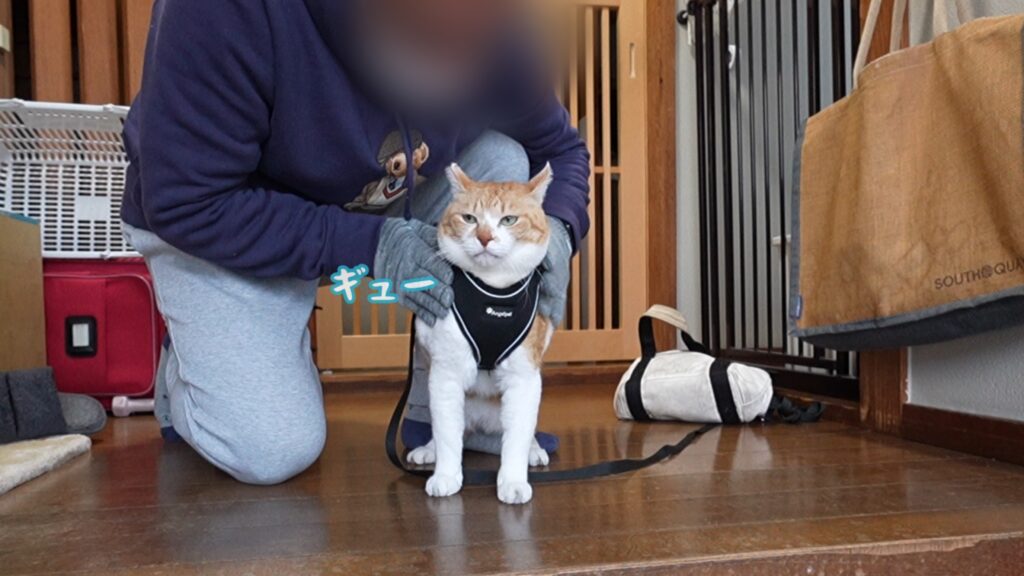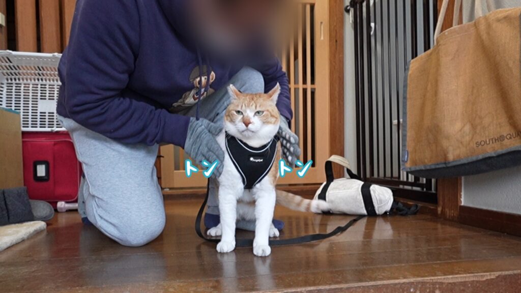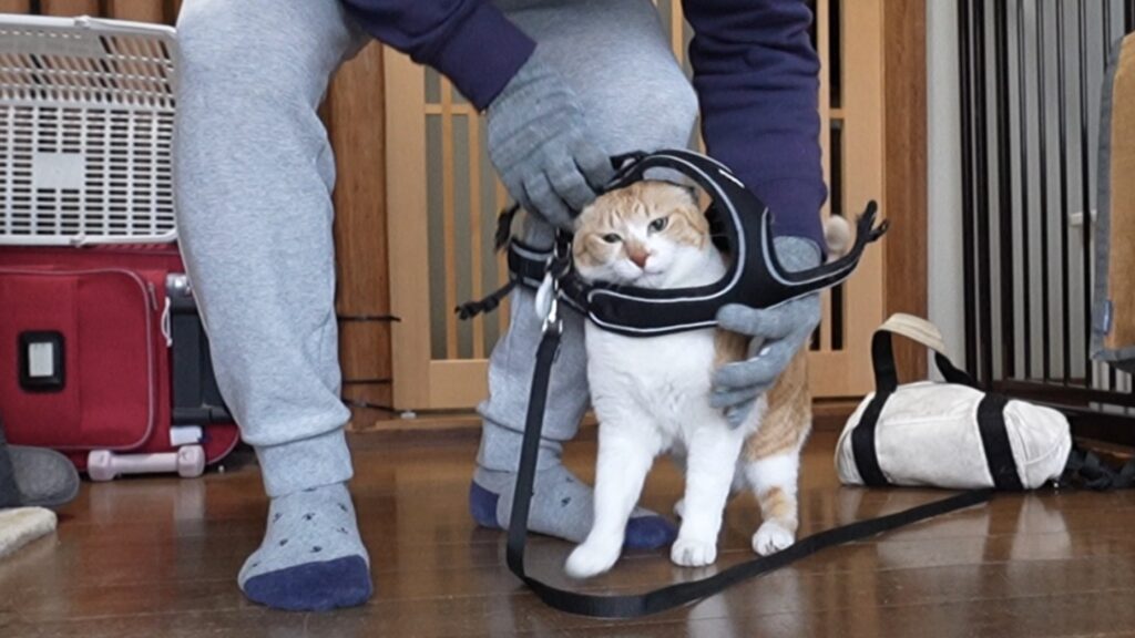 [amazonjs asin=”B07WQJCXRC” locale=”JP” title=”猫 猫用 ハーネス 胴輪 猫具 ねこ ネコ 子猫 子犬 小型犬 散歩 お出かけ 抜けない ベスト ソフト胸あて 軽量 頭を通さずマジックテープで装着 サイズ調節可 夜反射 通気メッシュ (S, ブラック)”]