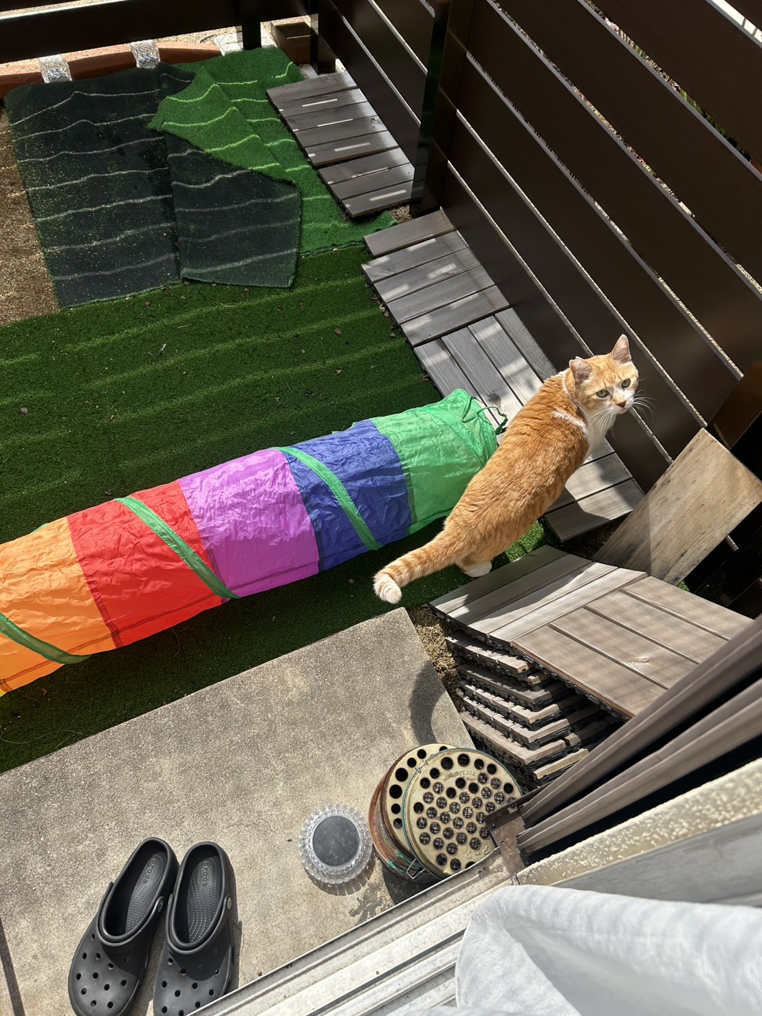 庭に現れたのはタヌキ…?と思ったら猫でした